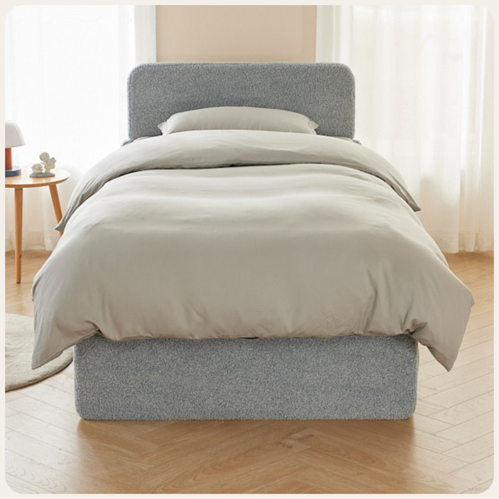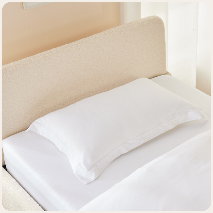 Our bamboo bed sheets and kids bed set feature a premium 400TC sateen weave, giving them a beautifully smooth and cool-to-the-touch feel, perfect for cosy, calming bedtime routines. Naturally hypoallergenic, antibacterial, and odour-resistant, this organic bamboo fabric helps maintain a cleaner and healthier sleep space for children with sensitive skin or allergies.